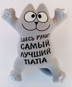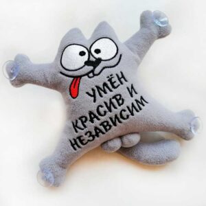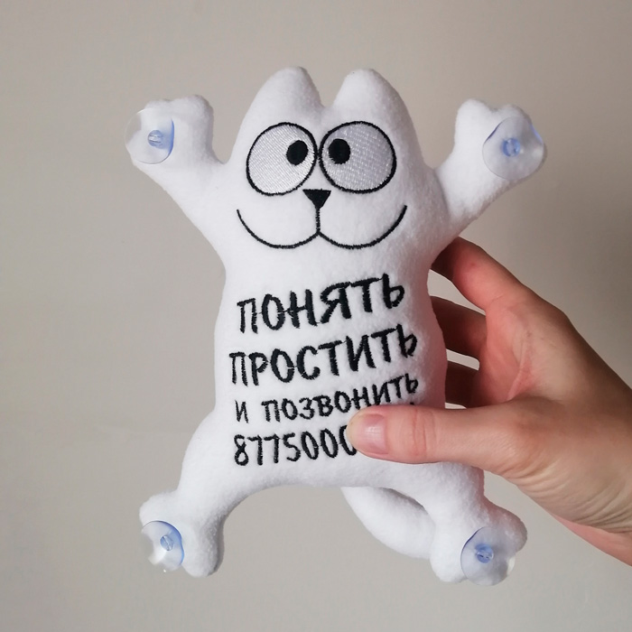 Котики на стекло автомобиля — выполнены по мотивам мультсериала «Simon’s cat», высота 20 см, материал — флис, наполнитель — синтепух. Вы можете заказать котика на стекло с любой надписью или логотипом. Срок изготовления 2-3 рабочих дня. Перед изготовлением, наш дизайнер согласует с вами макет котика.